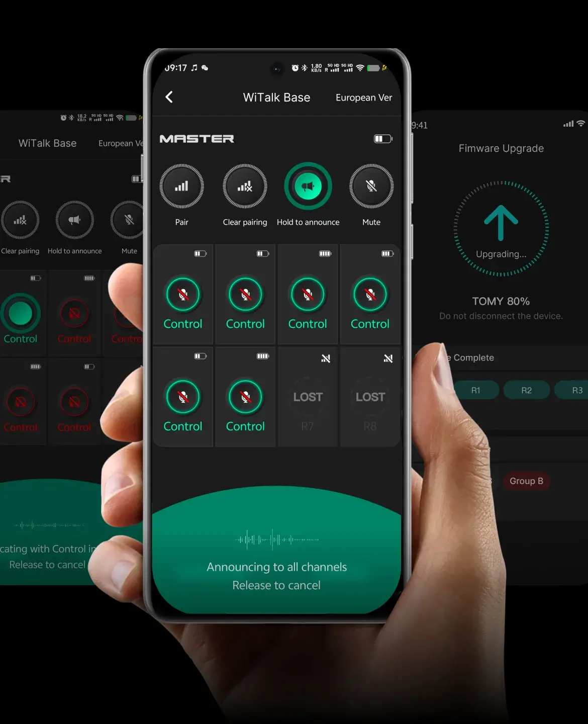 | Battery Life | Master: 9 h (with 4 remote headsets) Remote: 13 h |